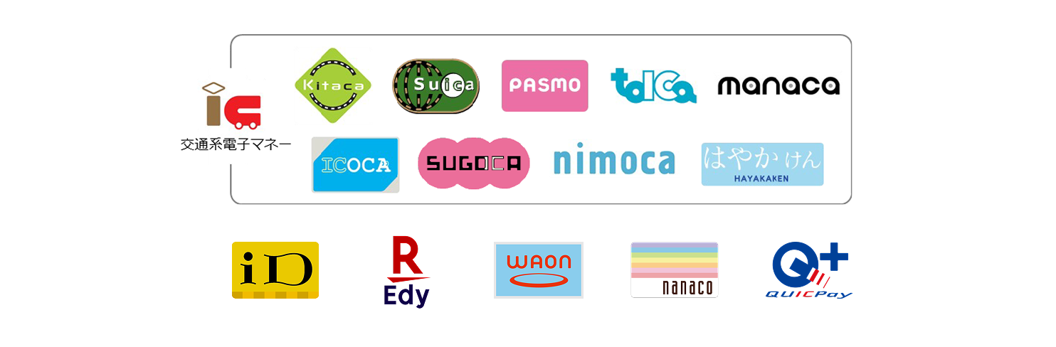 ※「Kitaca」は、北海道旅客鉄道株式会社の登録商標です。「Suica」は、東日本旅客鉄道株式会社の登録商標です。「PASMO」は、株式会社パスモの登録商標です。「TOICA」は、東海旅客鉄道株式会社の登録商標です。「manaca/マナカ」は、株式会社名古屋交通開発機構及び株式会社エムアイシーの登録商標です。「ICOCA」は、西日本旅客鉄道株式会社の登録商標です。「SUGOCA」は、九州旅客鉄道株式会社の登録商標です。「nimoca」は、西日本鉄道株式会社の登録商標です。「はやかけん」は、福岡市交通局の登録商標です。「iD」ロゴは、株式会社NTTドコモの登録商標です。「楽天Edy(ラクテンエディ)」は、楽天Edy株式会社が運営するプリペイド型電子マネーです。「WAON」は、イオン株式会社の登録商標です。「nanaco」は、株式会社セブン・カードサービスの登録商標です。「QUICPay+TM(クイックペイプラス)」は、株式会社ジェーシービーの登録商標です。 「楽天ペイ」ロゴは、楽天グループ株式会社の登録商標です。「au PAY」は、KDDI株式会社の登録商標です。「メルペイ」は、株式会社メルカリの登録商標です。「d払い」ロゴは、株式会社NTTドコモの登録商標です。「ゆうちょPay」は、日本郵政株式会社の登録商標です。「Alipay」は、アドバンスド ニュー テクノロジーズ カンパニー リミテッドの登録商標です。「WeChat Pay」は、テンセントホールディングスリミテッドの登録商標です。「UnionPay(銀聯)」は、CHINA UNIONPAY Co.,Ltd.の登録商標です。Apple Payは、Apple Inc. の商標です。Google Pay、Google Payロゴは 、Google LLC の商標です。
