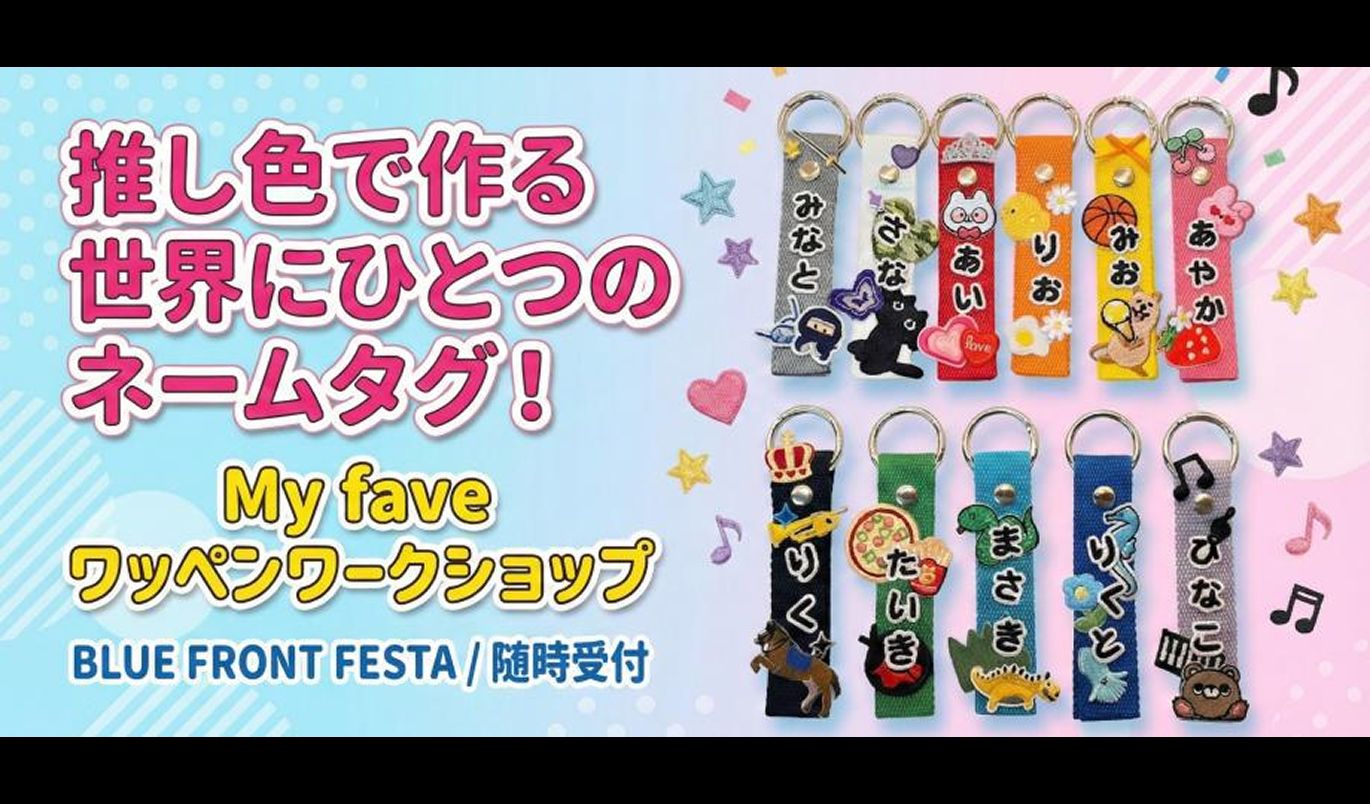 ワッペンワーク専門店「My fave(マイフェイブ)」によるワッペンワークショップ。カラフルなネームタグの土台と、数百種類以上のポップで可愛いワッペンの中から、好きなパーツを自由に組み合わせてつくります。大好きな「推し」のカラーで作る応援グッズ、お子様の通園・通学バッグの目印、親子でお揃いのキーホルダーなど、アイデア次第で楽しみ方は無限大。世界に一つだけの、あなただけのオリジナルグッズ作りをぜひお楽しみください。
